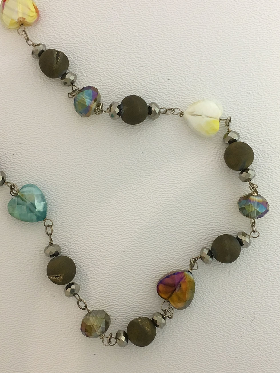 925 Druzy Quearts, Hematite, & Crystal 20" Necklace with 2" Extender